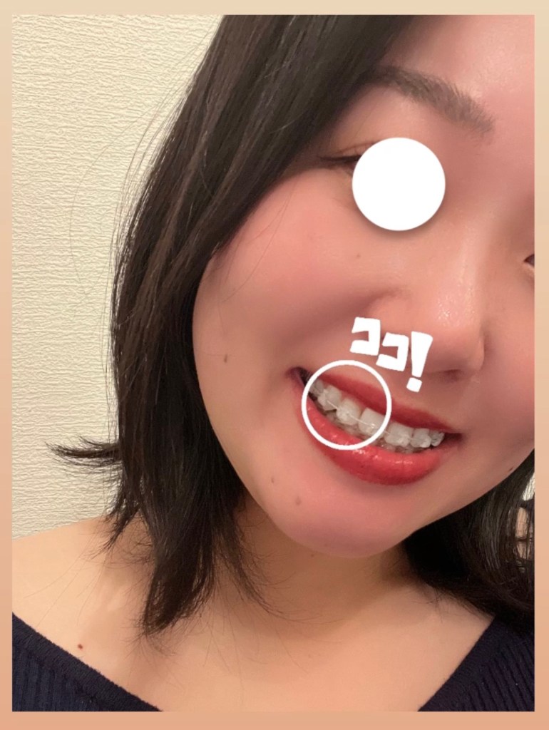 前回は上の歯にチェーン状のゴムをかけてて、これがカレーとか食べると黄色く変色してしまうもので😵
